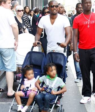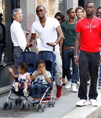 Il giocatore dell'Inter si è rilassato passeggiando in via Montenapoleone insieme alle due figlie Maelle e Siena