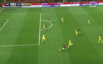 Il primo gol del Milan nasce dal cross di Ibra, che dalla sinistra pesca in area Pato