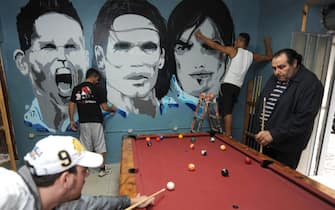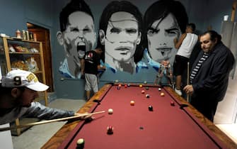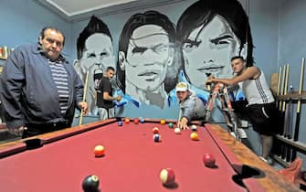 Un modo per avere sempre con sè, tra carte e biliardo, i propri beniamini (foto Ansa)