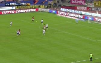 Evidente e volontario il fallo del giocatore del Lecce che interviene sul piede d'appoggio di Totti