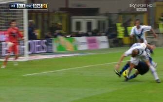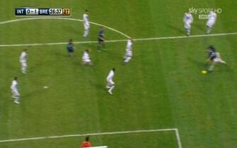 In realtà è in posizione regolare. Semmai più avanzato è Bogdani al centro che però resta fuori dall’azione. Schelotto infatti mette in mezzo e Jimenez segna. Tutto ok