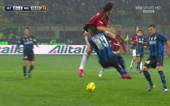 Ibrahimovic nel tentativo di anticipare Materazzi ha colpito il difensore dell'Inter allo zigomo