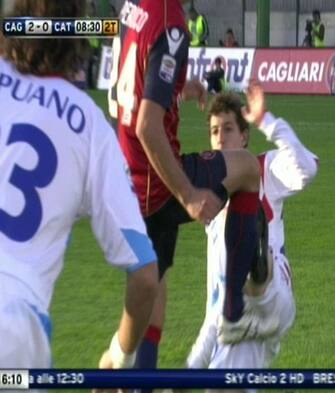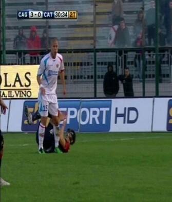 Al 31', sempre della ripresa, il Catania perde per l'espulsione anche per il giapponese Morimoto. Dopo un contrasto aereo con Ariaudo, colpisce il difensore di casa con un calcio. Giusta, ma l'arbitro non vede anche un calcetto del cagliaritano