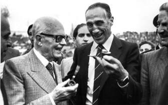 L’abbraccio tra il presidente della Repubblica Sandro Pertini ed Enzo Bearzot poco dopo la conquista della coppo del mondo contro la Germania: era il 07 luglio 1982