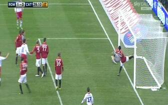 ROMA-CATANIA 4-2. A quattro minuti dalla fine Vucinic sblocca il risultato segnando su passaggio di Totti. Il Catania protesta molto e chiede il fuorigioco di Vucinic. Il fuorigioco c'è, ma è difficile da vedere. Questione di centimetri