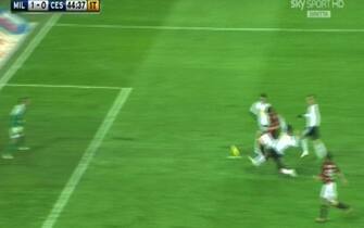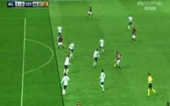 MILAN-CESENA 2-0. Al 44' Cassano serve Ibrahimovic che parte in posizione regolare