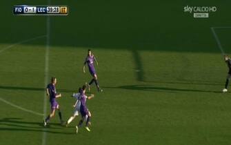 FIORENTINA-LECCE 1-1. Rigore per il Lecce al 40' quando la squadra già vince uno a zero. Kroldrup liscia su Di Michele che si libera in area