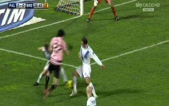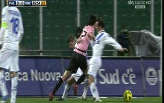 PALERMO-BRESCIA 1-0. Rigore chiaro per il Palermo al 36'. Pastore tenta di andarsene, Filippini e Berardi lo stringono e gli chiudono la strada