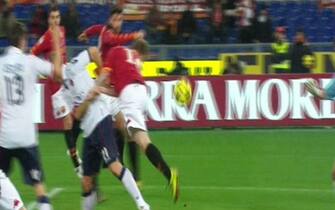 ROMA-CAGLIARI 3-0. I giallorossi vanno in vantaggio con un rigore segnato da Totti. Rigore molto leggero. Canini e De Rossi si tengono a vicenda. Nel dubbio il vantaggio andava dato al difensore