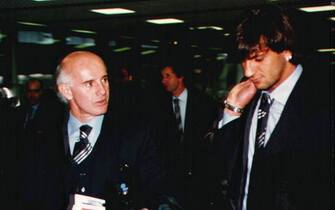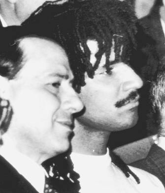Una storia di campioni e vittorie: qui Berlusconi è ritratto a Fiumicino con Gianluigi Lentini (che fu un colpo costosissimo di mercato) e Arrigo Sacchi