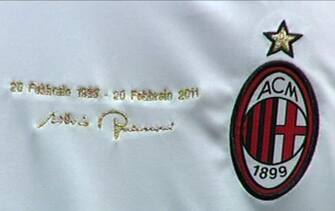 Ecco la maglia che il Milan indosserà a Verona contro il Chievo: sotto le date (2- febbraio 1986-20 febbraio 2011) ecco l'autografo di Silvio Berlusconi