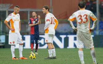 I giallorossi, duramente contestati sabato a Trigoria, volano sul 3-0 contro il Genoa dopo 51 minuti di gioco. Poi il crollo: la difesa barcolla e i rossoblu vanno a segno quattro volte in poco più di mezz'ora. GUARDA LA GALLERY