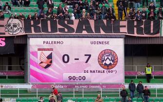 Impietoso il tabellone dello stadio: la sconfitta dei rosanero è destinata a rimanere nella storia (Ansa)