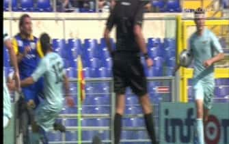 LAZIO-PARMA 2-0. Proteste del Parma per un fallo di mano di Lichsteiner, ma è involontario. Il braccio è troppo vicino al corpo