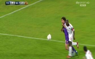 FIORENTINA-MILAN 1-2. 41' st, Ibrahimovic si lascia scappare qualche parolina di troppo, Morganti su segnalazione del guardialinee gli mostra subito il rosso