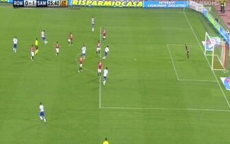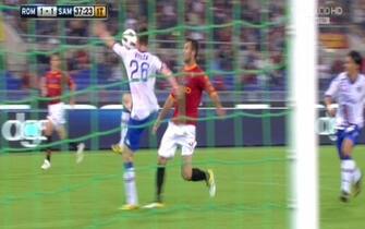 ROMA-SAMPDORIA 3-1. Al 38' Vucinic entra in area e cerca di rimettere al centro, Volta tocca prima con il petto e poi con il braccio
