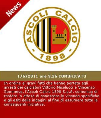 L'Ascoli calcio, dal proprio sito ufficiale, attende sviluppi dopo i fatti che hanno coinvolto i suoi due tesserati Sommese e Micolucci