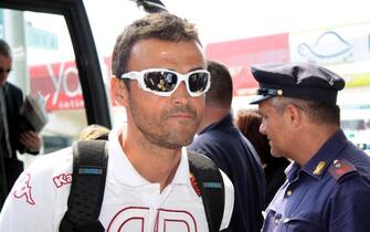 Luis Enrique, anche lui abbronzato, occhiali da sole con montatura bianca, guida il gruppo