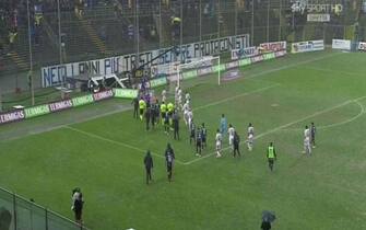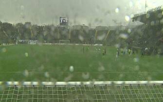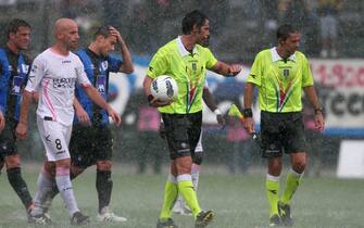 Partita sospesa per pioggia al 20' della ripresa e con i padroni di casa in vantaggio grazie al gol di Denis. Il drenaggio dello stadio Azzurri d'Italia non ha permesso di tornare a giocare subito dopo l'abbondante precipitazione. GUARDA LE FOTO