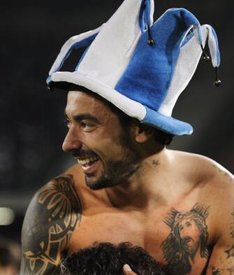 I tatuaggi gli adornano buona parte del petto. E così, tra tribali, stelle e scritte di ogni tipo, Ezequiel Lavezzi ha trovato posto anche per un Cristo sofferente con tanto di corona di spine. Spirito religioso o gusto per il kitsch?