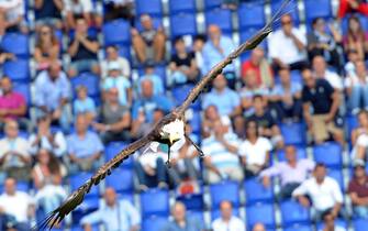 L'aquila mascotte del club biancoceleste ha deciso, ieri sera, di gustarsi la vittoria della squadra dall'alto: il rapace è infatti rimasto appollaiato sulla copertura dell'Olimpico sino a ben oltre il termine dell'incontro, insensibile al richiamo dell'addestratore. LA GALLERY