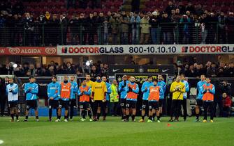 L'applauso della squadra durante il momento di commemorazione. Prisco morì il 12 dicembre 2001