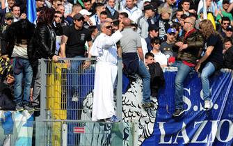Ecco come si è presentato allo stadio uno dei tifosi della Lazio: vestito da vescovo. La sua particolare benedizione ha portato fortuna alla squadra di Reja -