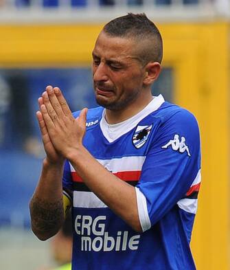 Capitano e bandiera della Samp. Angelo Palombo, con il viso rigato dalla lecrime, chiede scusa ai tifosi per la retrocessione in Serie B -
