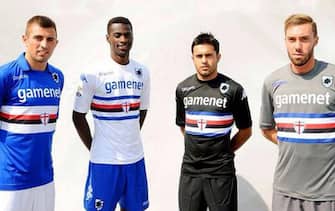 Coerente all'ultima stagione la scelta delle maglie della Sampdoria, che adotta i medesimi colori anche per le due divise da trasferta -