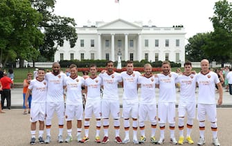 La seconda divisa della Roma, completamente bianca e presentata, appunto, davanti alla Casa Bianca -