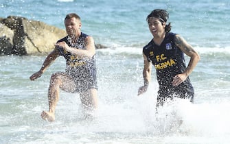 Il neo acquisto Antonio Cassano trova comunque il modo di sguazzare in mare, felice come un bimbo -
