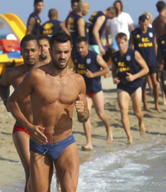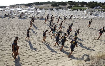 Come i marines in Full Metal Jacket, i giocatori fanno jogging sulla battigia capitanati da Raffaele Palladino -