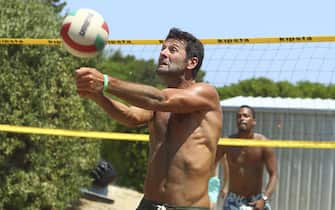 Esemplare (insomma...) esecuzione di Massimo Gobbi nel rimandare la palla in un match di volley sulla spiaggia -