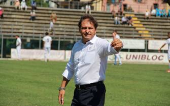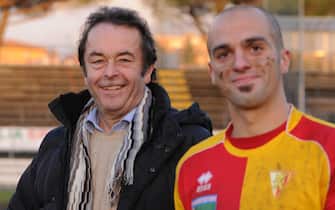 Il presidente del Poggibonsi, Antonello Pianigiani, con il capitano della squadra, Manuel Pera, attaccante nato a Lucca nel 1984: Pera, 29 anni, è il più vecchio in rosa -