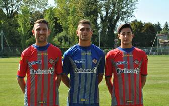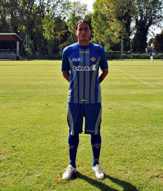 Le prima maglia della Cremonese nella stagione 2013-3014. In blu il portiere Quaini -