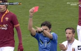 Oltre al danno la beffa. Sotto di quattro gol in casa della Roma, il Genoa ha perso al 60' minuto anche Matuzalem per espulsione -