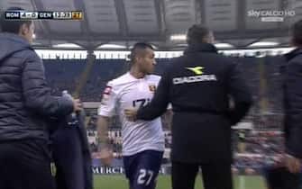 Il centrocampista rossoblù è stato sanzionato col secondo cartellino giallo dall'arbitro Calvarese mentre usciva dal campo per una sostituzione con Cofie -