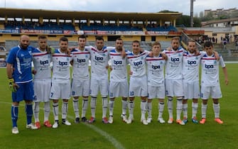 L'undici dell'Aprilia nella stagione 2013-2014 in Lega Pro Seconda Divisione. Questo scatto risale alla trasferta vittoriosa sul campo del Cosenza -