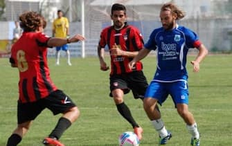 Il centrocampista e capitano dell'Aprilia, Stefano Amadio, durante la gara interna contro il Sorrento nella stagione 2013-14 -