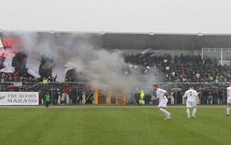 Pordenone e Marano guidano il raggruppamento C della Serie D: 82 punti e un'ultima giornata da giocare. I due capitani, Zubin e Ferretti (da pordenonecalcio.com) -