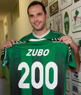 Emil Zubin, capitano e simbolo del Pordenone, con la maglia che ha celebrato il traguardo dei 200 gol (da pordenonecalcio.com) -