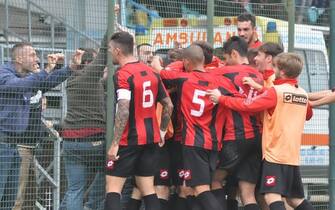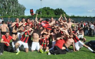 LA FOTOGALLERY. Finale thrilling nel Girone D della Serie D: la capolista di mister Bagatti, avanti di 2 punti rispetto ai rossoneri, perde 2-1 al 94' lo scontro diretto al 'Borelli'. Di Pecchioli il gol promozione. Emiliani condannati ai playoff