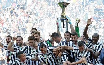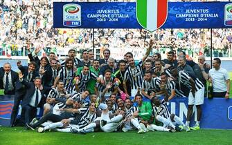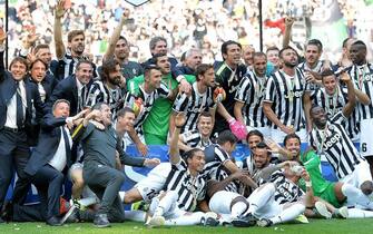 La Juventus celebra il terzo scudetto di fila dopo la vittoria interna contr il Cagliari -