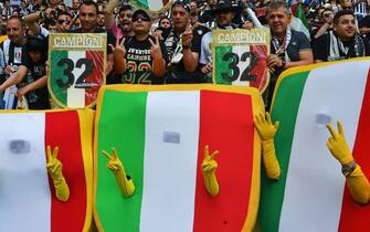 LA FOTOGALLERY. All'ultima giornata di campionato, prima e dopo la netta vittoria col Cagliari, sugli spalti di casa è festa grande, con striscioni e scudetti. E i giocatori bianconeri posano in campo coi figli. LO SPECIALE JUVENTUS