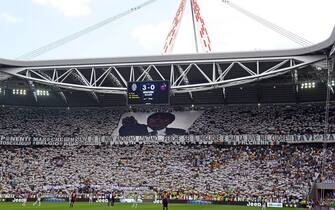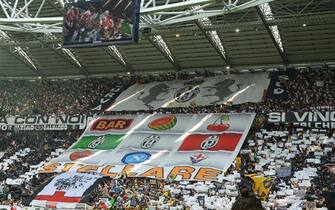 Grande festa allo Juventus Stadium per Conte & C. All'inizio del secondo tempo di Juve-Cagliari, i tifosi hanno esposto la scritta sotto una gigantografia lunga quanto l'intera curva: "Senza di te non andremo lontano" -