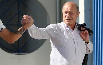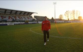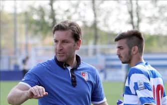 L'allenatore Alberto Colombo lascia il terreno di gioco dello Stadio Carlo Speroni