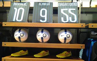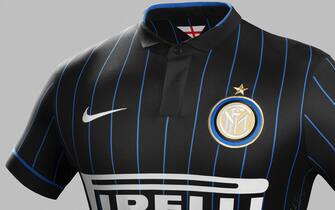 FOTOGALLERY. Cambia completamente il look della divisa nerazzurra, che perde le tradizionali strisce larghe a favore di uno sfondo nero con una "gessatura" azzurra. Sui social network già qualche polemica tra i tifosi, come in occasione della maglia rossa