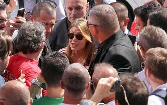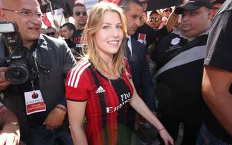 Barbara Berlusconi, in occhiali scuri e maglia del Milan, circondata dai fan -