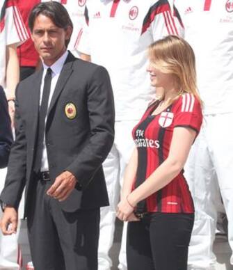 Lady Barbara sorridente in casacca rossonera alla presentazione della squadra e di Pippo -