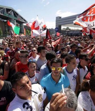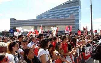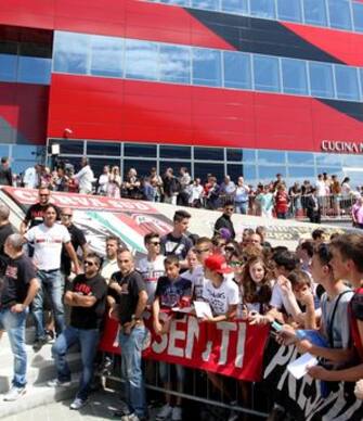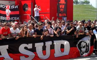 Dietro le transenne, in una bellissima giornata estiva di sole, il popolo rossonero in festa -